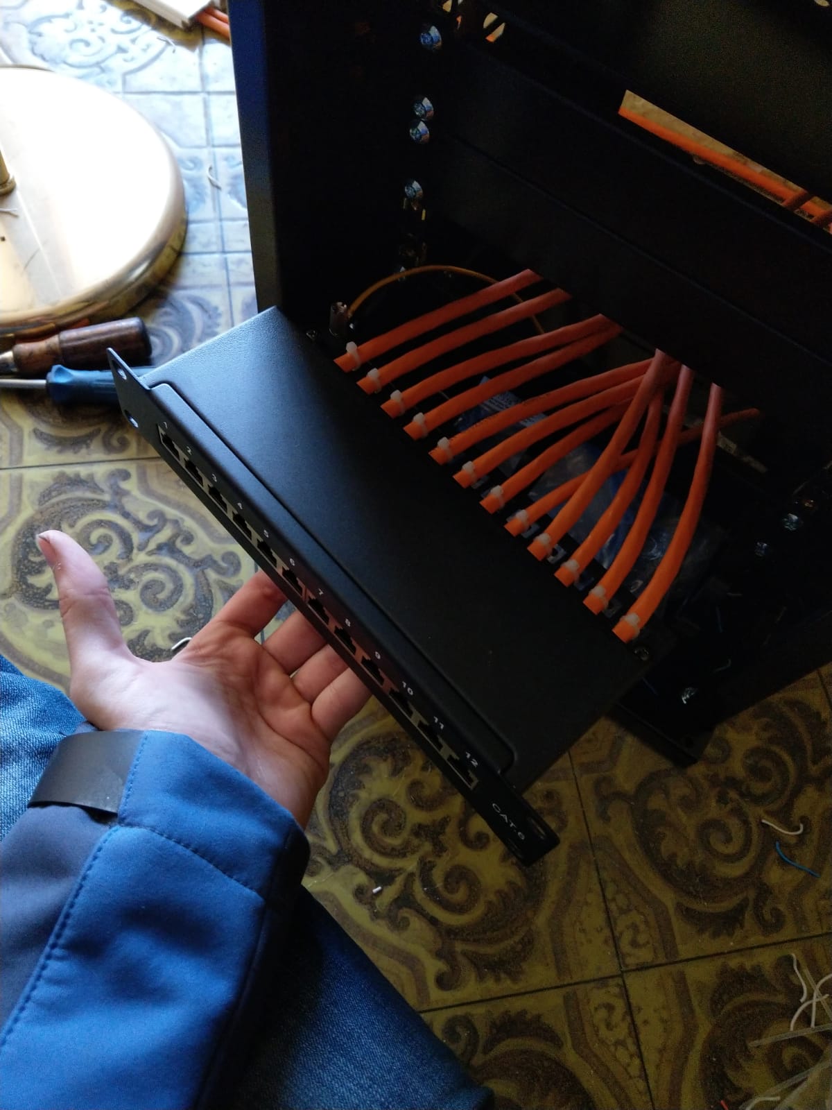 Aufgrund dessen sollten auch beim Auflegen der Adern auf dem Patchpanel und auf den Netzwerkdosen, die Schirme soweit wie möglich erhalten bleiben. Siehe die Bilder meines zuletzt aufgelegten 10 Zoll Patchpanels.